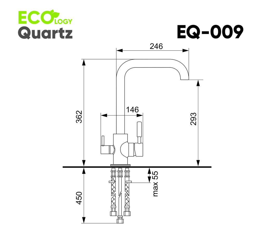 ULGRAN Quartz UQ-019 - современный кухонный смеситель с дополнительным краном для подключения фильтрованной воды, оснащенный кран-буксой с керамическими пластинами. Реализован тройной подвод воды через один излив: холодная, горячая и фильтрованная. Переход с одного подвода на другой производится поворотом рычага. Набор для соединения с фильтром входит в комплект . Система фильтрации приобретается дополнительно и монтируется под мойку, специальный индикатор сообщает о необходимости замены картриджа. Материал корпуса выполнен из высококачественной латуни, а окрашивание под "искусственный камень" в цвет мойки ULGRAN Quartz выполняется на собственном производстве, что позволяет идеально попасть в фирменный цветULGRAN Quartz. В качестве керамического картриджа используется известный бренд Wanhai диаметром 35 мм с высокой пропускной способностью в 500 тысяч циклов "открывания-закрывания". На подвижные части картриджа Wanhai нанесена специальная невымываемая силиконовая смазка, а керамические пластины изготовлены из 96% оксида алюминия, что, в сочетании с высоким качеством шлифовки обеспечивает долговечность, надежность, плавность хода рукоятки. Смеситель оборудован съемным пластиковым аэратором для экономии воды и поворотным изливом на 360 градусов. В комплектацию входя: керамический картридж Wanhai, гибкая подводка, комплект крепежных элементов, кран-букса с керамическими пластинами для дополнительного излива для фильтрованной воды, набор для подсоединения фильтра питьевой воды (гибкая подводка + переходник-цанга), технический паспорт и гарантийный талон. Заводская гарантия составляет 3 года на материал корпуса, 1 год на комплектующие к смесителю и 1 год на материал покрытия.