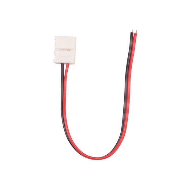Одиночный коннектор с проводом 15см для подключения питания к открытым светодиодным одноцветным лентам (3528, 2835) шириной 8мм. Максимальный допустимый ток 3А, напряжение до 50 В.