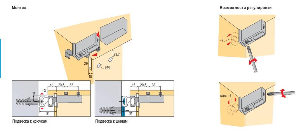 Не допускается установка без отдельных подвесов дополнительных элементов мебели на шкафы, например антресолей.