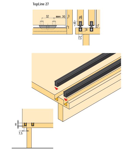 Используется, если для конструкции шкафа требуется внутренняя нижняя дверная направляющая.