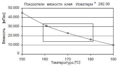 Измерялось на 2 мм клеевой нити при указанной рабочей температуре по методике фирмы Иоват. Свойства склеиваемых материалов и условия нанесения влияют на качество склеивания. Поэтому мы рекомендуем Вам провести предварительные испытания.