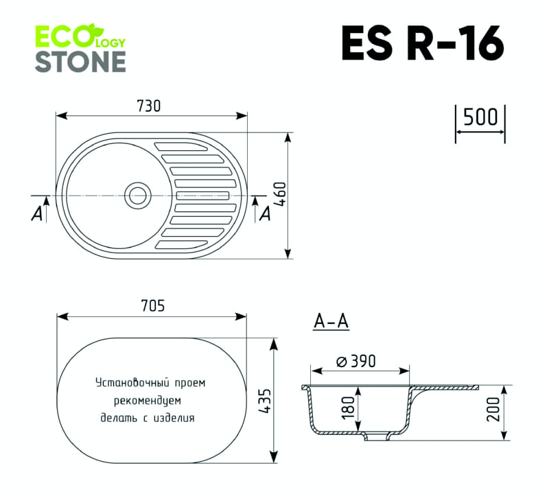 EcologyStone ES-16 – односекционная реверсивная кухонная мойка с классической круглой чашей. Данная мойка устанавливается в шкаф шириной от 50 см и является оборачиваемой. В комплектацию входят: сливная арматура с гофротрубой, технический паспорт и гарантийный талон. Заводская гарантия составляет 2 года, а срок службы данной мойки, при соблюдении основных правил ухода за ней, составляет более 10 лет.