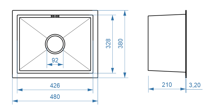 Для моек — минимальный размер базы, в которую войдет чаша. Габаритный размер с крылом может быть больше.