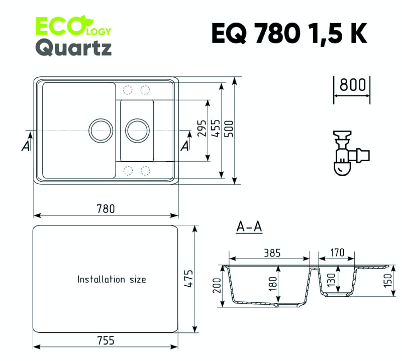 | Материал мойки | Искусственный камень на основе кварцевого песка |