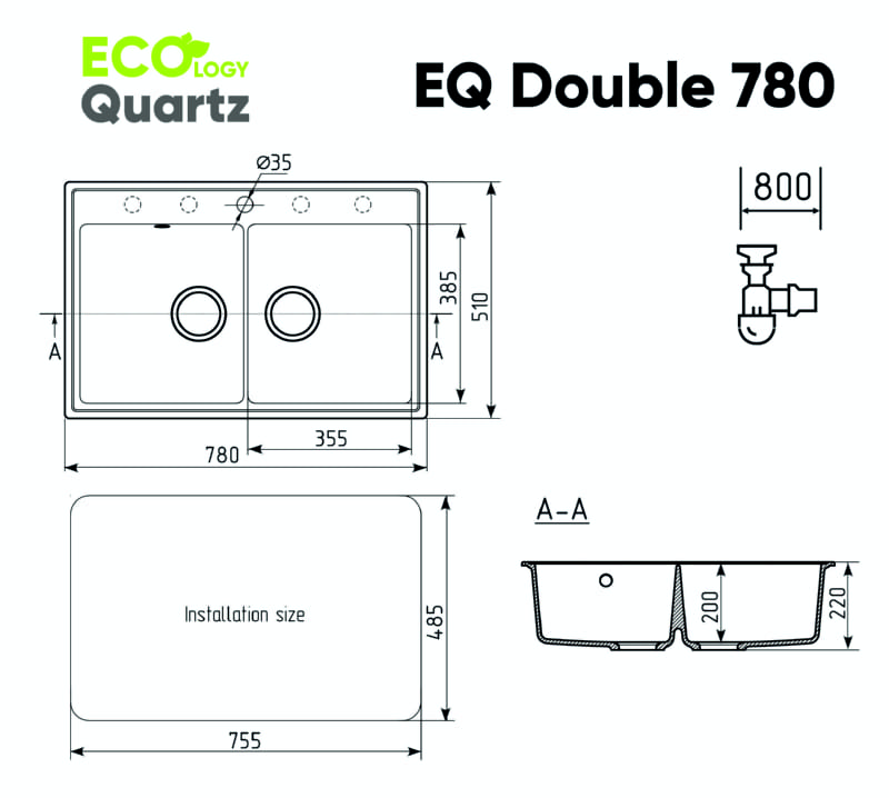 ULGRAN Quartz Ruma 780 - практичная двухчашевая кухонная мойка, изготовленная на современном автоматизированном оборудовании из высококачественных кварцевых композитов по инжекционной технологии (литье под давлением). Кварцевый композит является поистине инновационным материалом в производстве кухонных моек! Он сочетает в себе такие неоспоримые преимущества как повышенная влагостойкость и термостойкость, возможность придать мойке при изготовлении практичный и функциональный дизайн, увеличенное сопротивление внешнему износу, снижение уровня шума при падении струи воды, безусловная гигиеничность и простота в уходе, а также сравнительно малый вес при высокой прочности. Мойка имеет отверстие под смеситель, а также предусмотрено еще 4 намеченных отверстия под смеситель и аксессуары (дозатор или клапан-автомат). Мойка устанавливается в кухонный шкаф шириной от 80 см. Данная мойка имеет современный эргономичный дизайн с вместительными чашами, тонкой перегодкой между ними, а также с функциональной площадкой под смеси тель и аксессуары. В комплектацию входит сливная арматура серии "Элит" с гофротрубой, технический паспорт и гарантийный талон. Заводская гарантия составляет 7 лет, а срок службы данной мойки, при соблюдении основных правил ухода за ней, составляет более 20 лет.