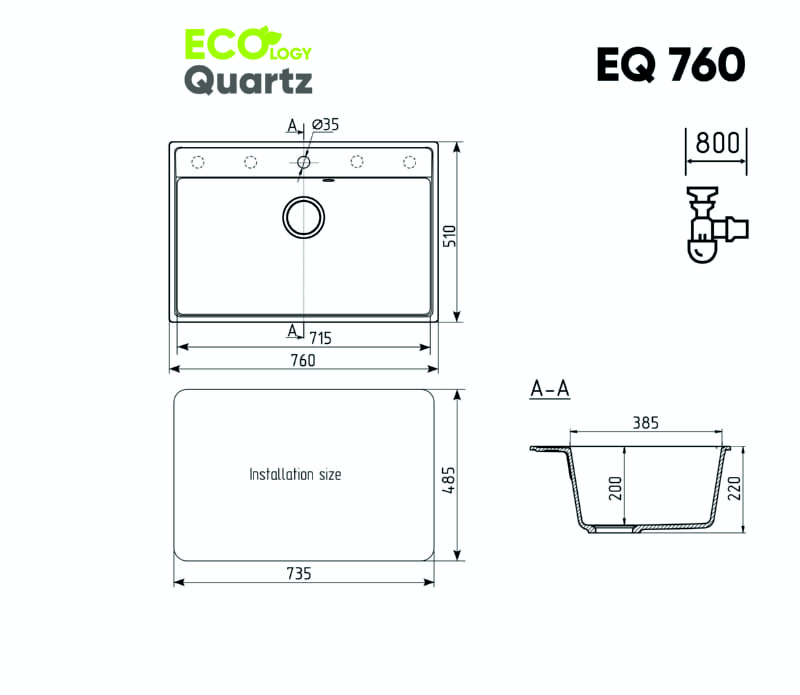 | Материал мойки | Искусственный камень на основе кварцевого песка |