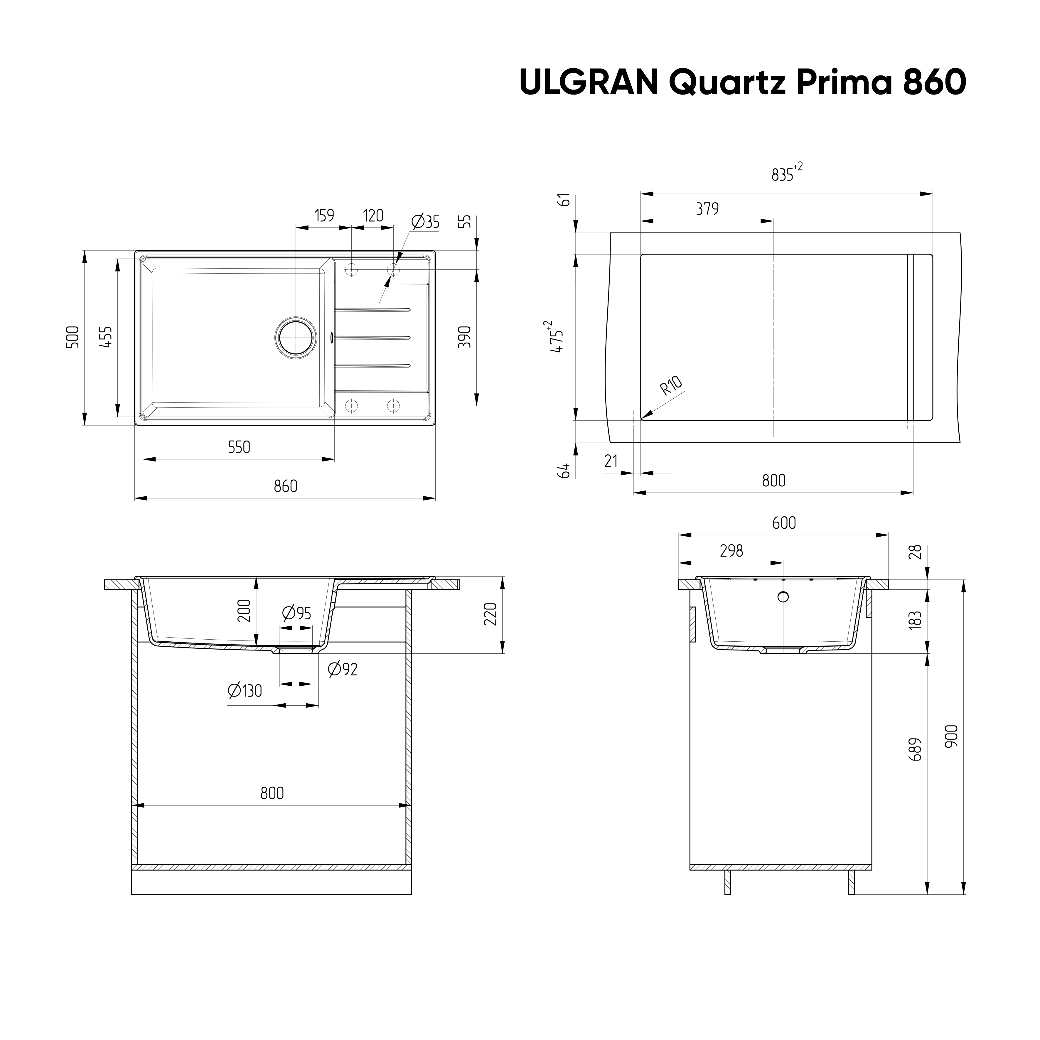 ULGRAN Quartz Prima 860 - профессиональная односекционная прямоугольная кухонная мойка с увеличенной чашей и функциональным крылом, изготовленная на современном автоматизированном оборудовании из высококачественных кварцевых композитов по инжекционной технологии (литье под давлением). Кварцевый композит является поистине инновационным материалом в производстве кухонных моек! Он сочетает в себе такие неоспоримые преимущества как повышенная влагостойкость и термостойкость, возможность придать мойке при изготовлении практичный и функциональный дизайн, увеличенное сопротивление внешнему износу, снижение уровня шума при падении струи воды, безусловная гигиеничность и простота в уходе, а также сравнительно малый вес при высокой прочности. Мойка является реверсивной, то есть оборачиваемой - крыло можно установить как справа, так и слева. Предусмотрено 4 намеченных отверстия под смеситель и аксессуары (дозатор или клапан-автомат). Мойка устанавливается в кухонный шкаф шириной от 80 см. Данная мойка имеет современный минималистичный дизайн, а наличие эргономичного крыла сделает работу с данной мойкой еще более удобной и комфортной! Можно складывать чистую посуду, вымытые овощи или хранить кухонные аксессуары на дополнительной рабочей поверхности, а специальная форма крыла будет способствовать отведению стекающей воды в чашу мойки, а также защищать столешницу возле мойки от разбрызгивания воды. В комплектацию входит сливная арматура серии "Элит" с гофротрубой, технический паспорт и гарантийный талон. Заводская гарантия составляет 7 лет, а срок службы данной мойки, при соблюдении основных правил ухода за ней, составляет более 20 лет.