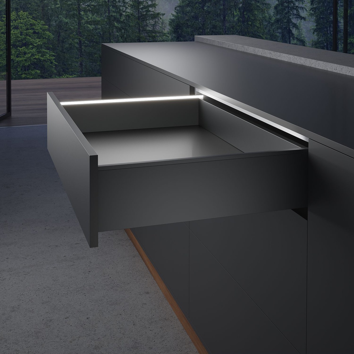 Стильная акцентная подсветка для системы AvanTech YOU для освещения внутреннего или наружнего пространства ящика.