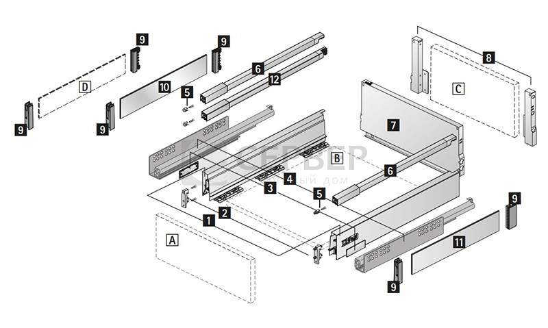 | Элемент системы | Комплект ящика с металлическими боковинами |