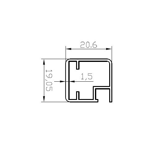 Профиль для изготовления рамочных фасадов со стеклом 4 мм, в просторечии - "узкий рамочный профиль" или "профиль 20 на 20".