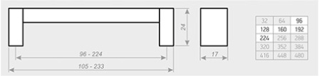 Ручка скоба, пластик ABS, цвет основной - хром матовый, декоративный - хром матовый (C18-128 SC/SC (03/03))