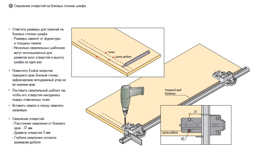С Exakta ряды отверстий на расстоянии 37 мм от переднего края боковины