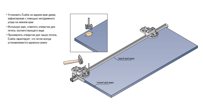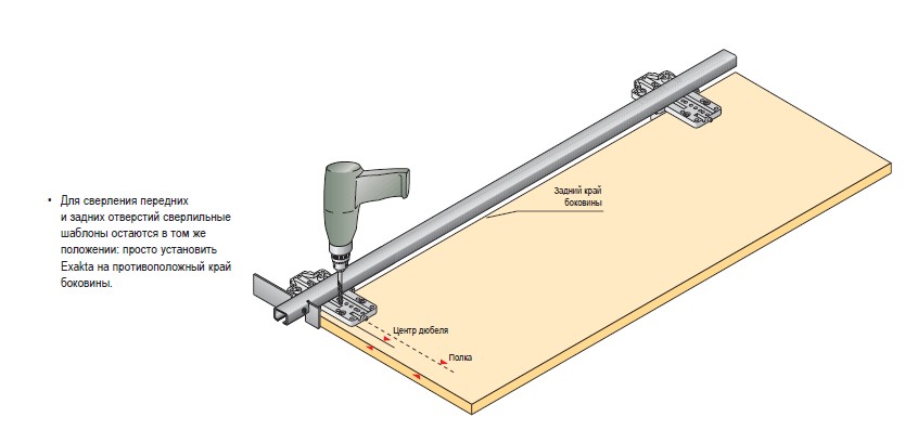 Сверлильный шаблон устанавливается на ходовой профиль Exakta