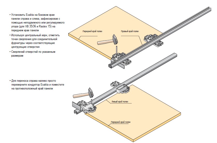 Для переноса справа налево кондуктор Exakta можно поместить в то же положение на противоположной