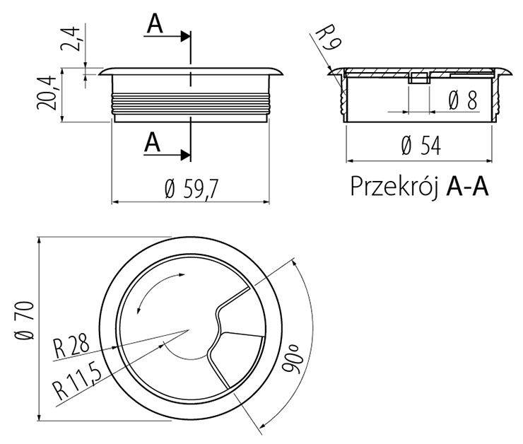 | Назначение для стола | Заглушка кабель-канала |