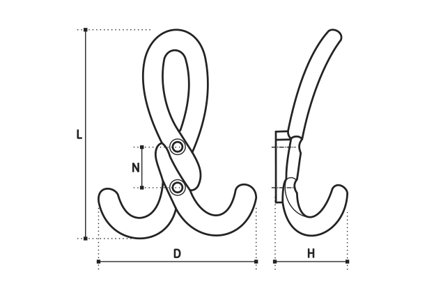 Крючок мебельный двухрожковый бронза античная (HE304DAB)
